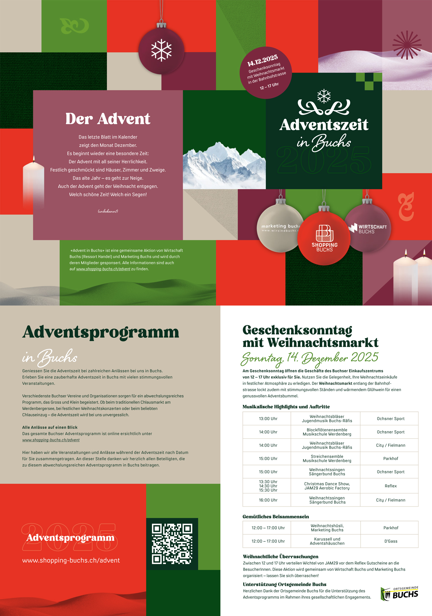 Advent in Buchs 14.12.2025, 12:00 Uhr So 14.12.2025, 12.00 – 17.00 Uhr Bahnhofstrasse, Buchs Flyer Veranstaltungen24. Januar 2026Winterkonzert1. März 2026Lehrerkonzert, Aula OZ Flös, Buchs9. März 2026Musizieren im Pensionsalter – Veeh-Harfe11. März 2026BÜHNE FREI!14. März 2026Stufentest 20262. Mai 2026Instrumentenvorstellung 202624. Juni 2026Schlusskonzert der Musikschule Werdenberg 2026